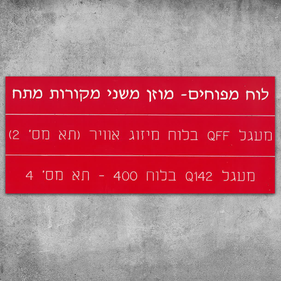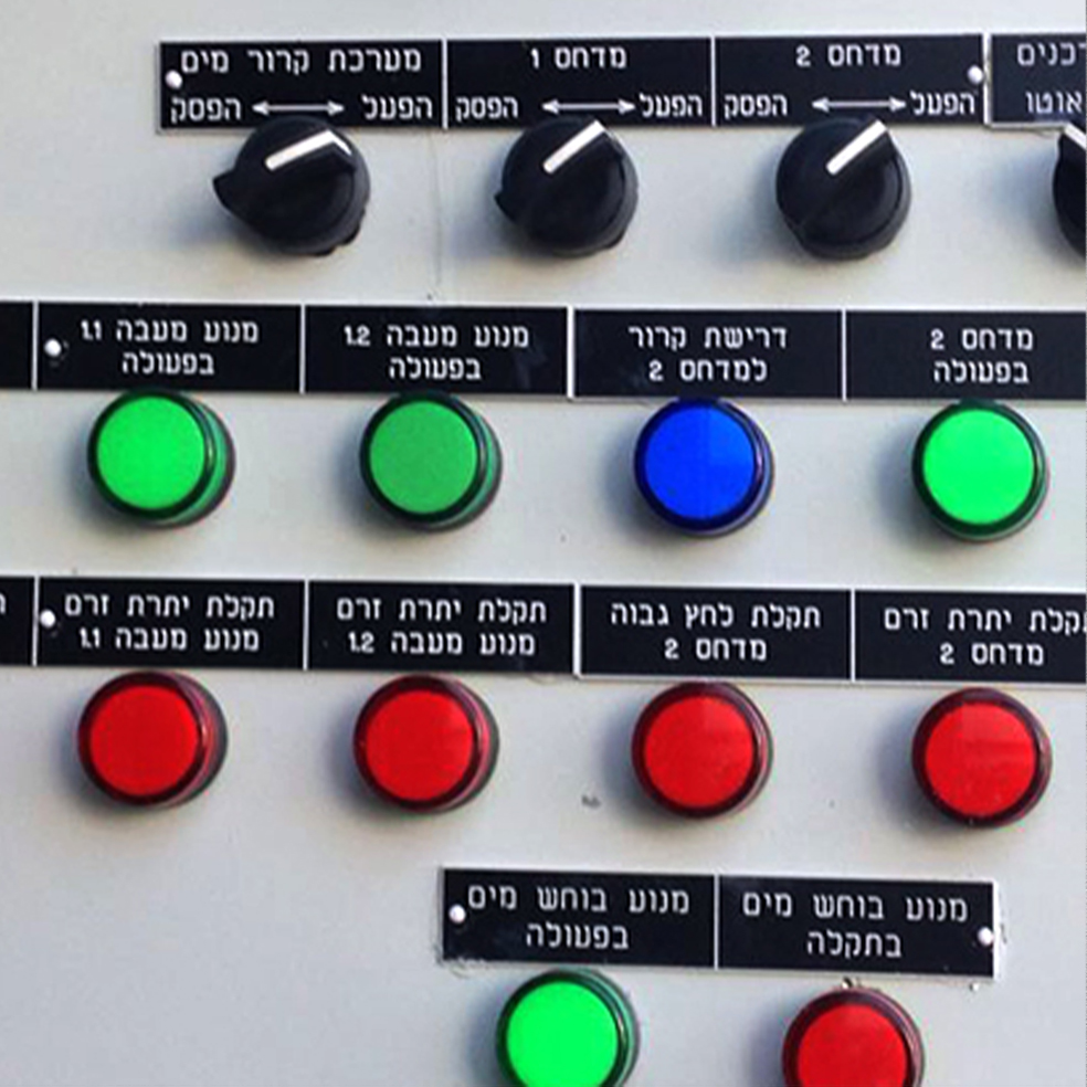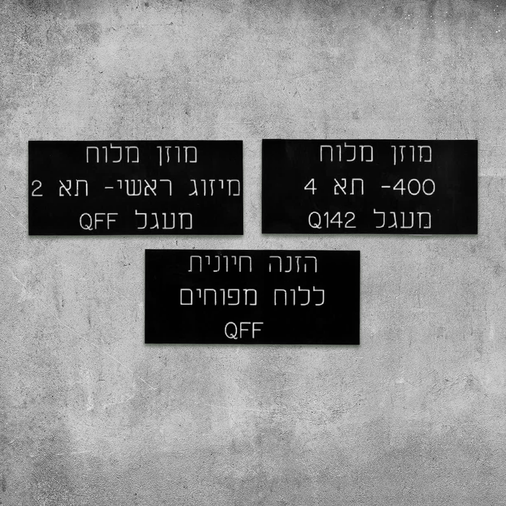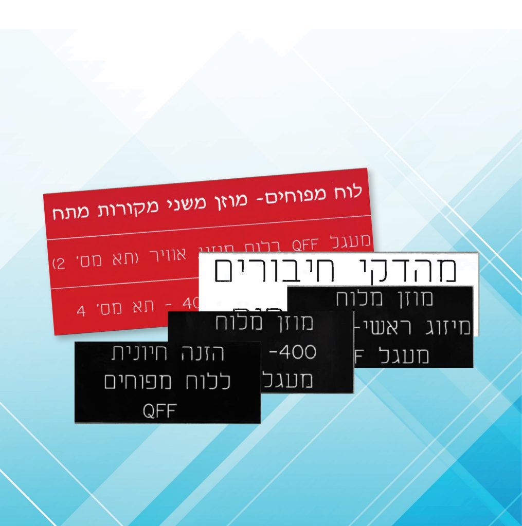 שלטים לארונות חשמל, לוחות בקרה, תקשורת, מחשבים ותיבות דואר. חריטה באמצעות טכנולוגיה משולבת CNC ולייזר.